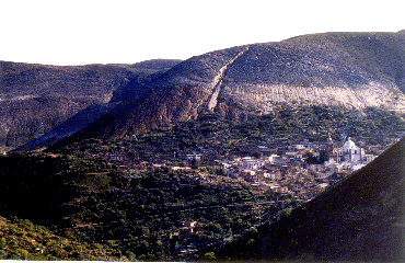 Close to El Quemado up in the mountains, is the old mining town of Real de Catorce. This is almost a ghost town, since the mines have been out of operation since the Mexican Revolution. The old houses are mostly falling in on themselves, but the church, which has the good fortune to possess a statue of