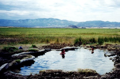 Left late and spent the night at Meadow, UT, at the hot spring there.
